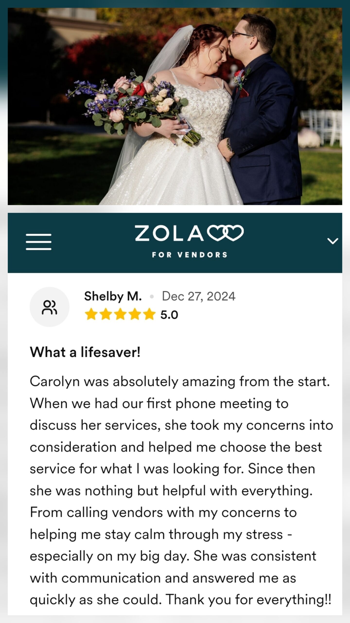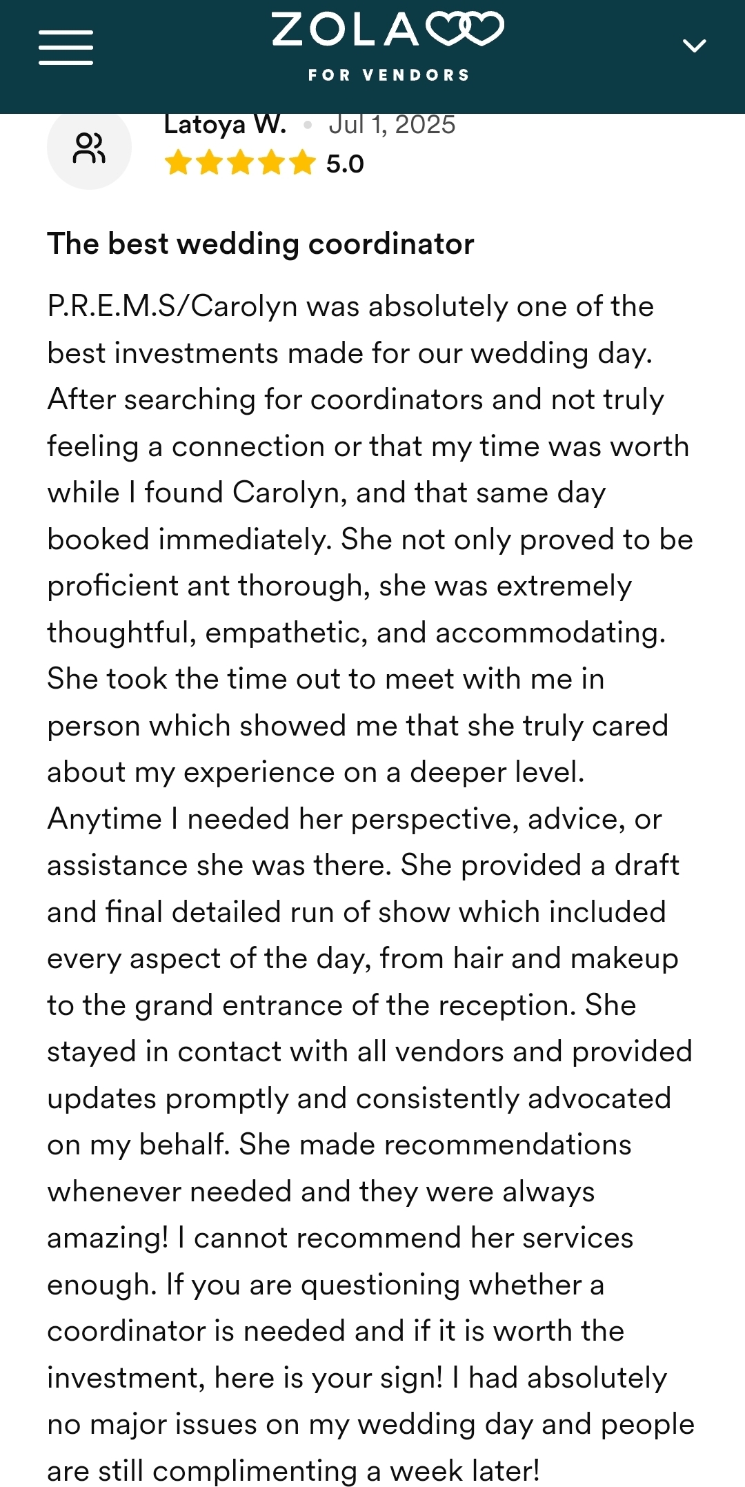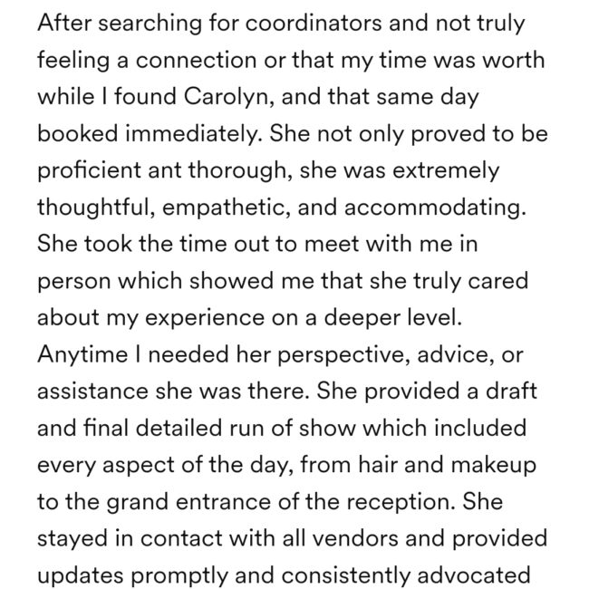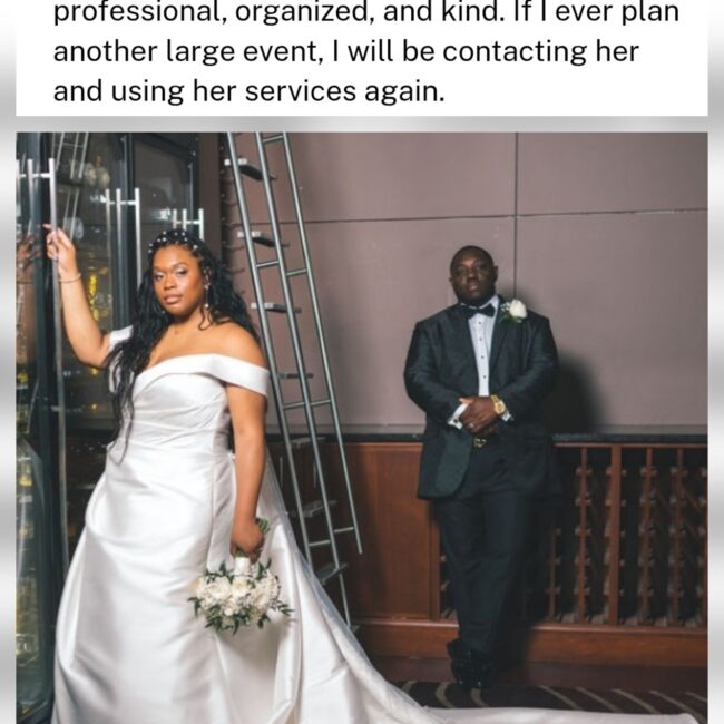I am so thankful for all of the love that I receive from couples. The event or wedding day takes a team to execute, and I love teamwork! Delivering on the details is what seals the deal for me for my clients. Here are a few.